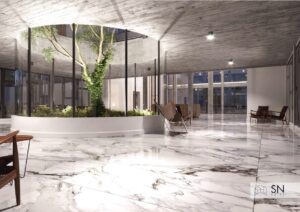 En solados de cocinas, baño, living, comedor y dormitorios, porcelanato de 60×60 cm de fabricación nacional de primera marca y calidad.