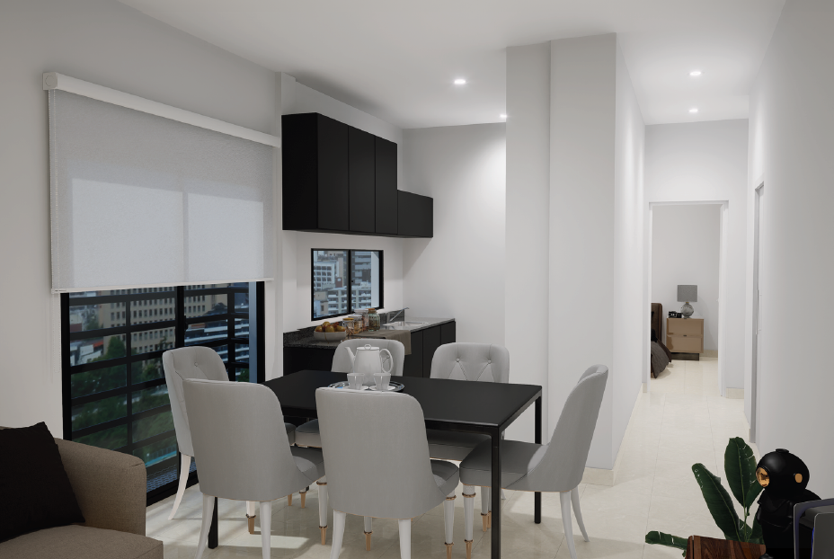 ETHOS I es un edificio que contempla el nuevo estilo de vida, incorporando las bondades del entorno verde y la vida de barrio para no perder el espíritu de la zona.